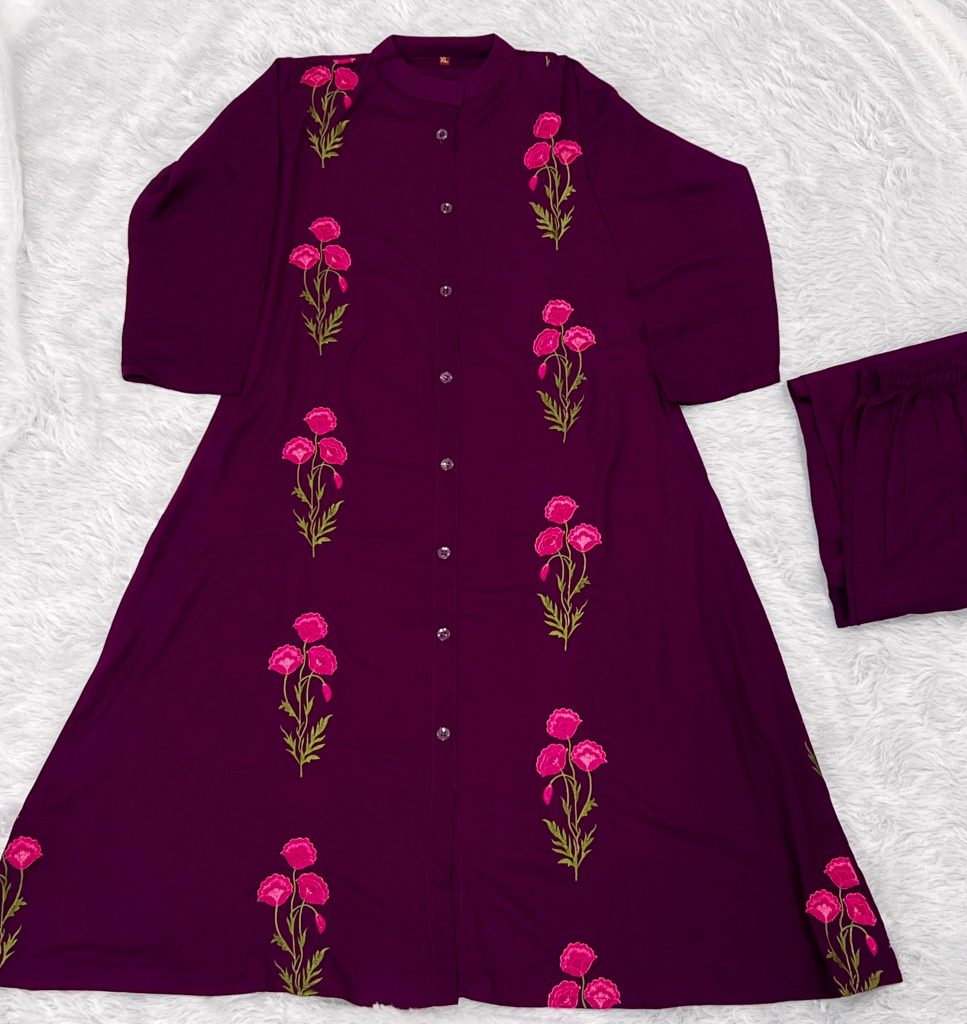 Kurti Fabric: 14kg heavy Rayon With Embroidery work