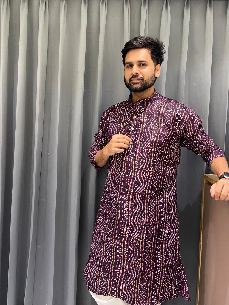 Navratri and Festival Special Mens and kids Kurta in Bandhani Print