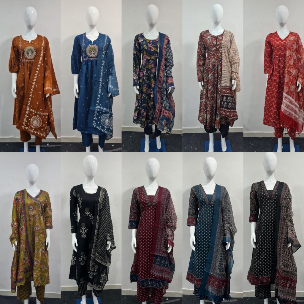 Garments with dyed work may also consist of slight colour variations due to the manual dyeing process that it has undergone.