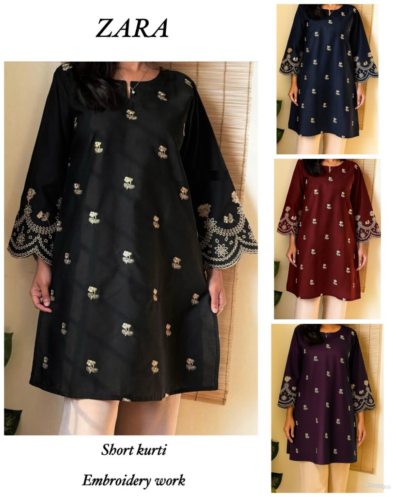 Trending Short Length Kurti With Embroidery Work