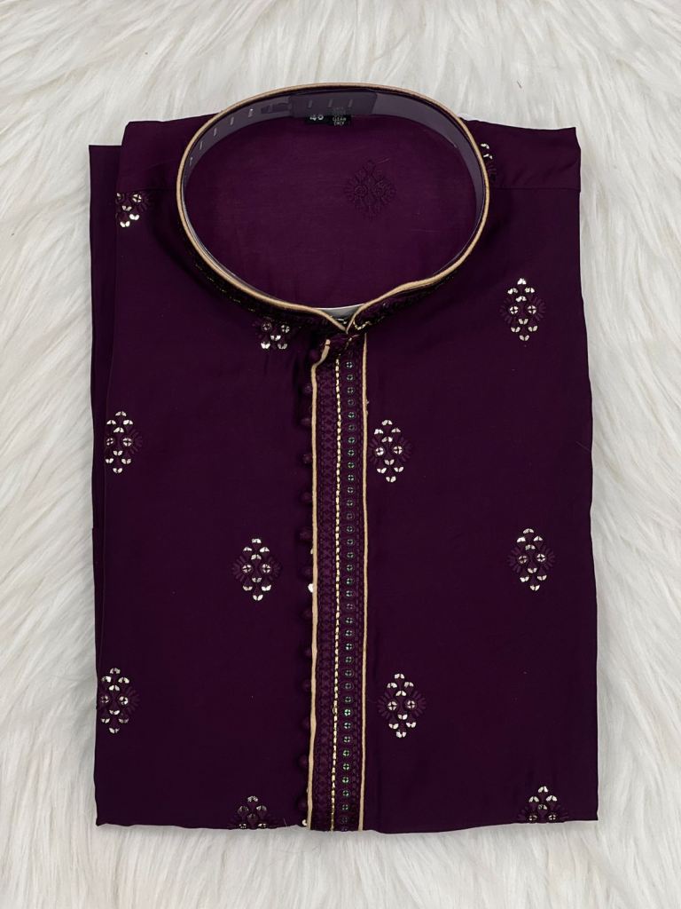 • HEAVY COTTON SILK KURTA PYJAMA WITH EMBROIDERY WORK FOR MEN