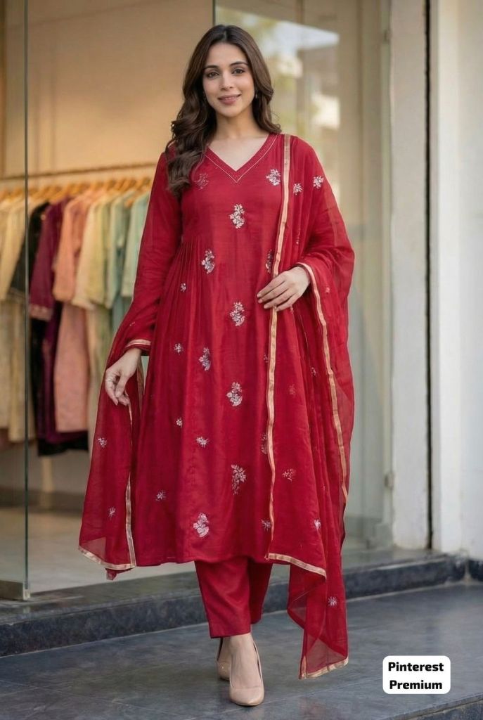 Ready to wear Anarkali ethnic wear for Pinteresty look with matching dupatta