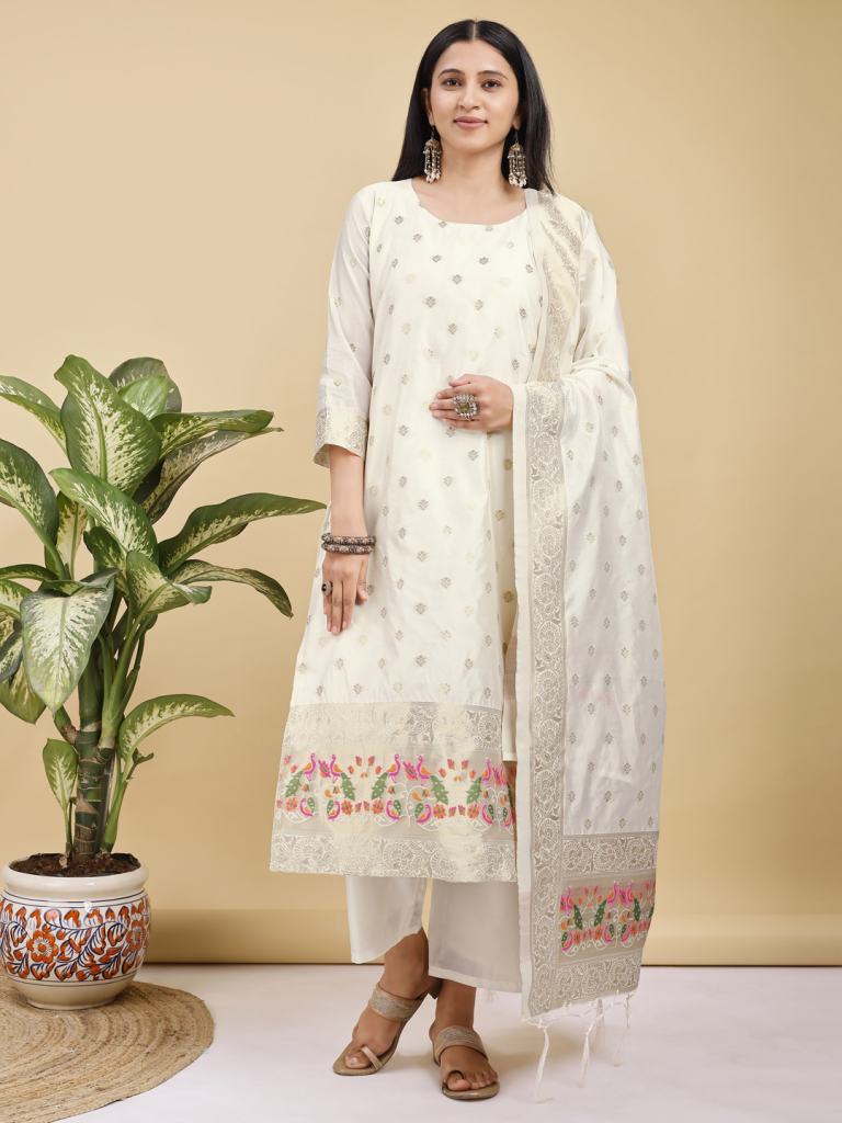 Premium Banarasi Silk Kurta Pant Dupatta Set (Ready Made)