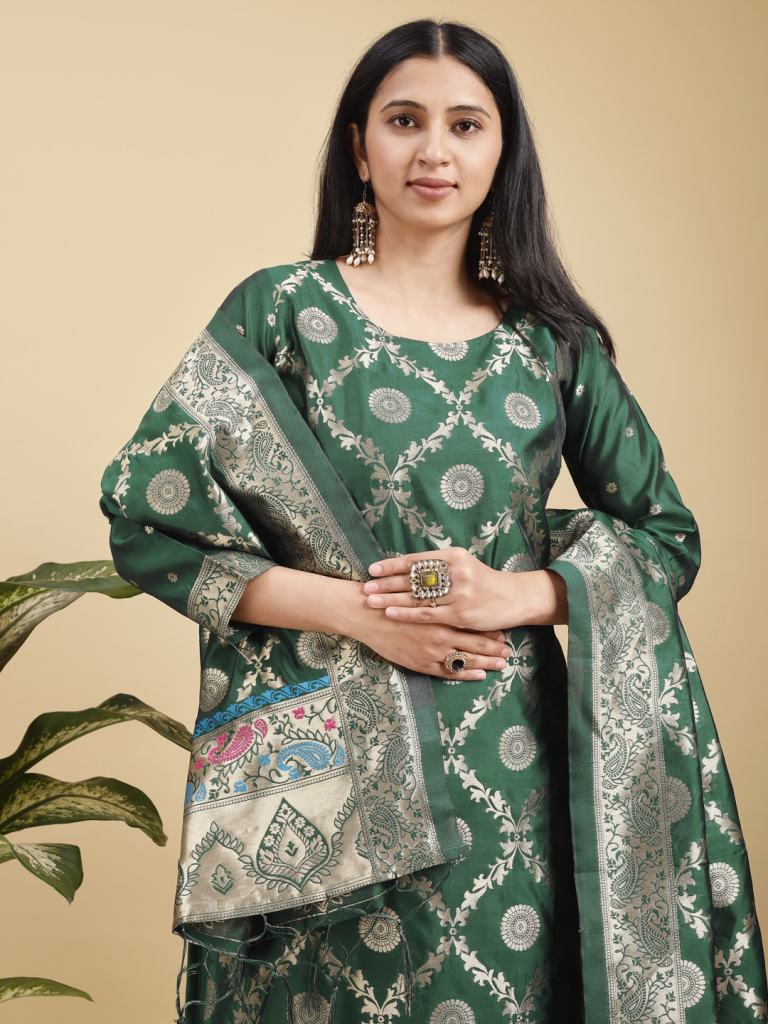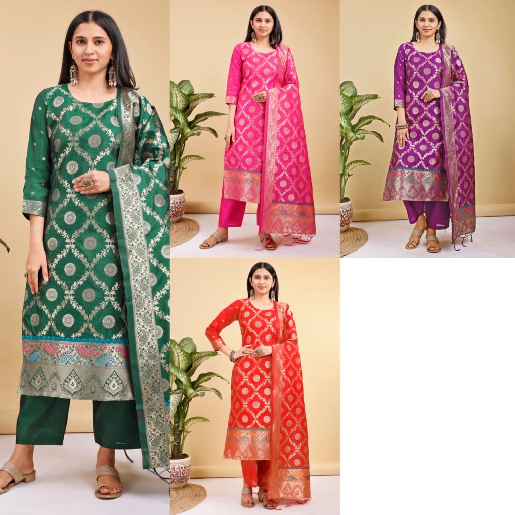Premium Banarasi Silk Kurta Pant Dupatta Set (Ready Made)