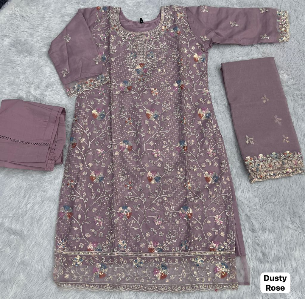 Organza Silk Embroidered Suit Set with Dupatta