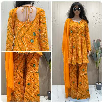 • Faux Georgette Sharara Suit