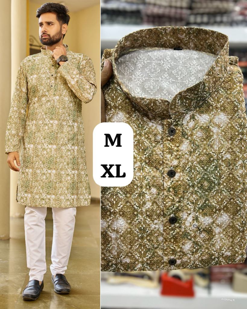 • Lucknowi printed with sequence work kurtas for men