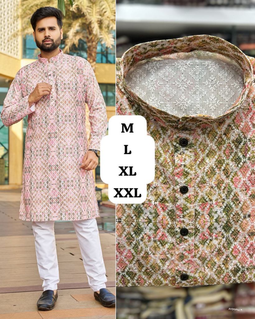 • Printed schiffli chikan work kurtas for men
