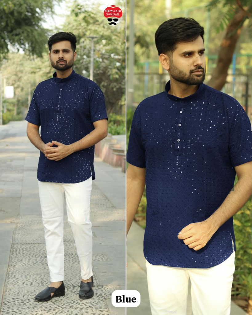 Chikan Work Short Kurta for Men Mens Embroidered Kurta