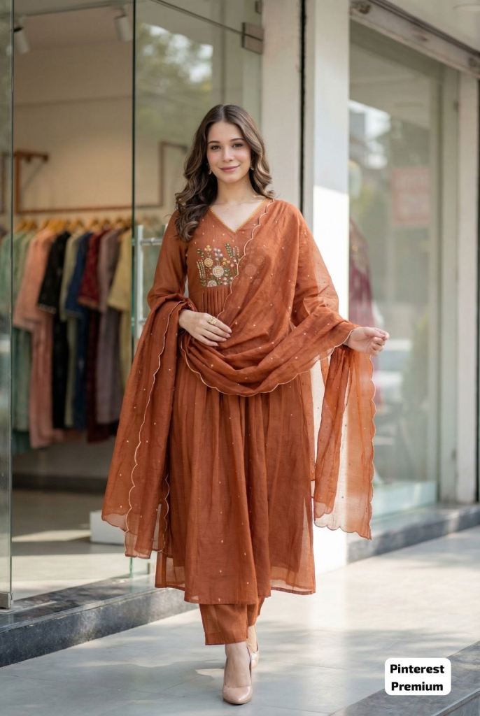Ready to wear Anarkali ethnic wear for Pinteresty look with matching dupatta