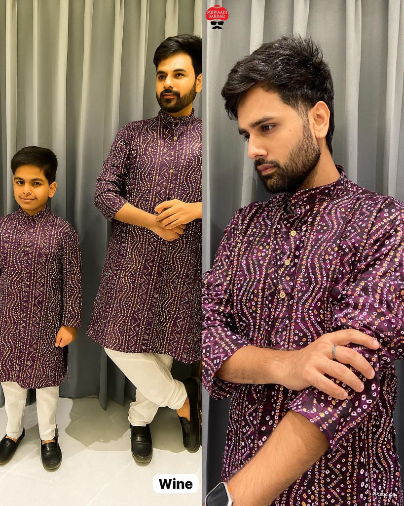 Navratri and Festival Special Mens and kids Kurta in Bandhani Print