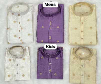Premium silk kurta with jacquard Father Kids Kurta Combo