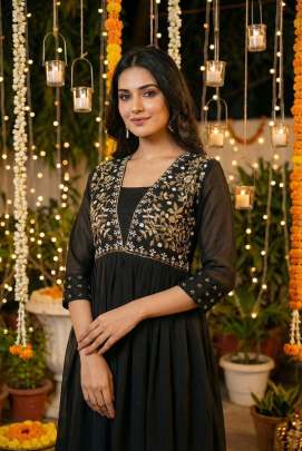 Manufacturer of georgette gown with embroidery Party-wear Gowns