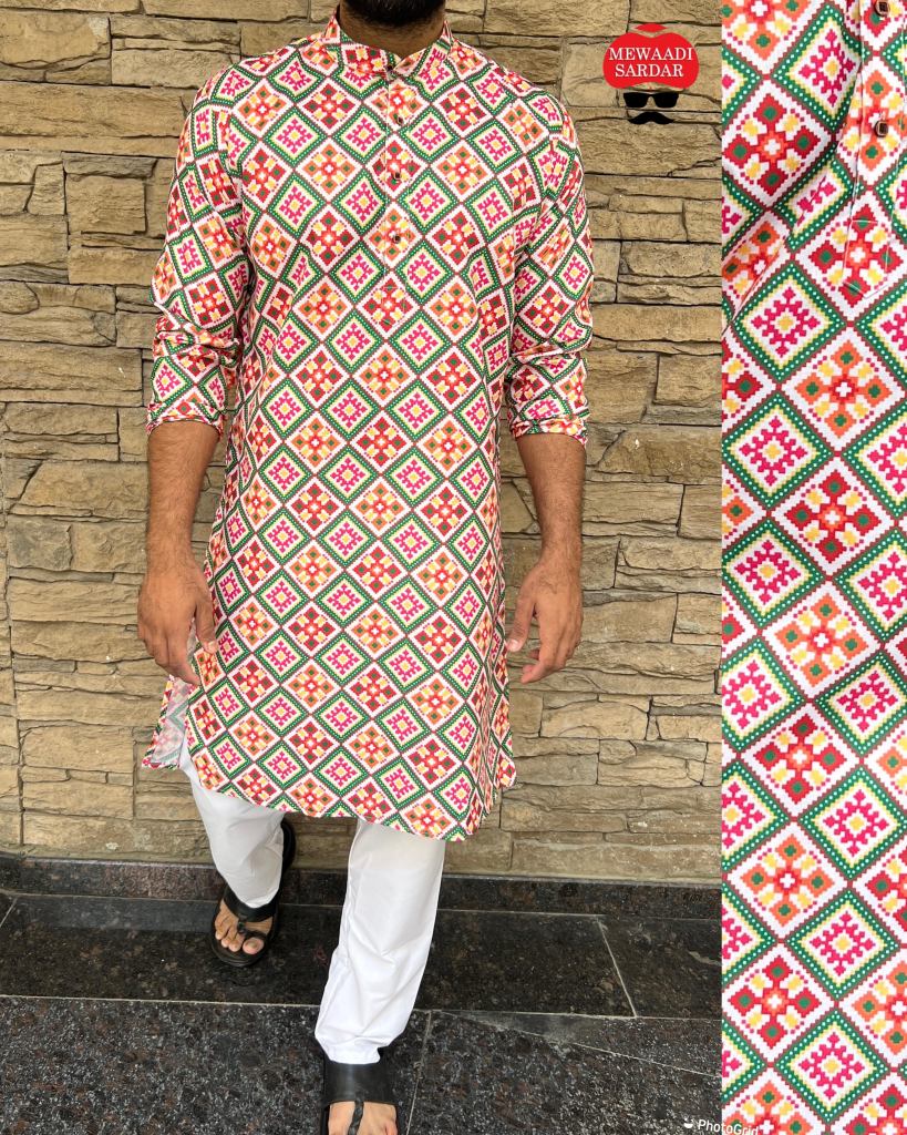 Being Desi by Mewaadi Sardar - Mens Cotton Patola Printed Kurta Set