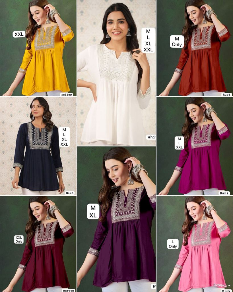 Embroidery Work Short Tops for Office and Regular Wear