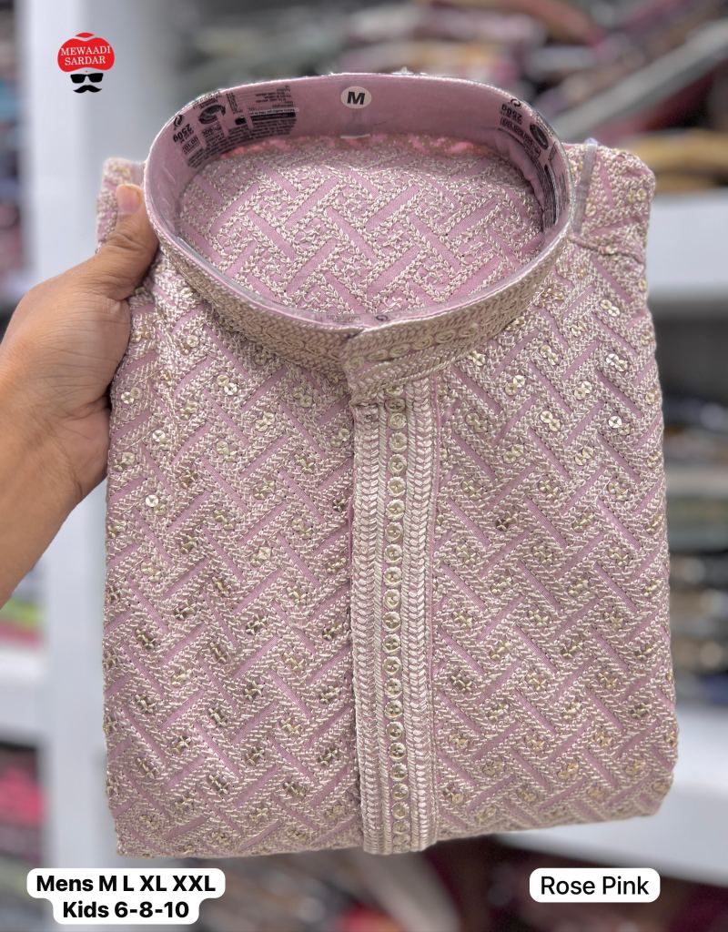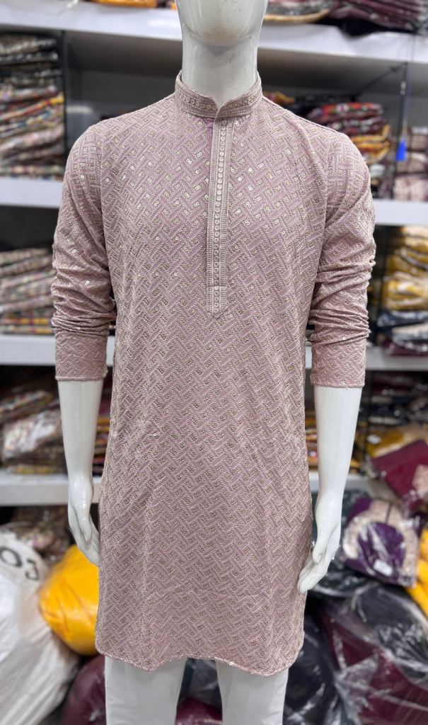 Rose pink color premium embroidery kurta collection Mens Embroidered Kurta