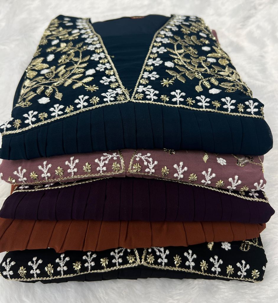 • Ready to wear georgette gown with embroidery work