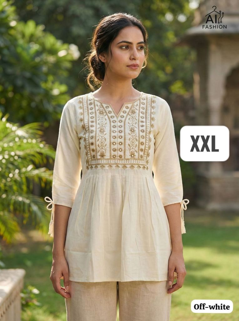 Trending Short length Kurti with Embroidery Work