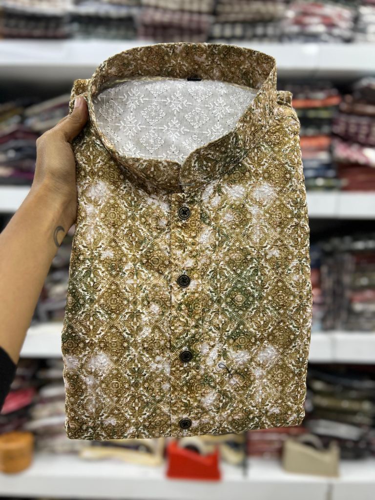 • Lucknowi printed with sequence work kurtas for men