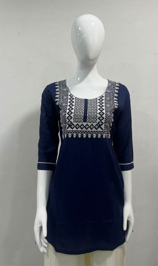 Trending Short length Kurti with Embroidery Work